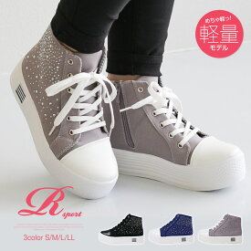 ハイカットスニーカー レディース レースアップ 厚底スニーカー 軽量 スニーカー ハイカット 厚底靴 サイドファスナー ボリュームスニーカー おしゃれ ラインストーン ネイビー 黒 531 176 かわいい グレー ブラック 歩きやすい 送料無料 軽い 履きやすい 限定special Price